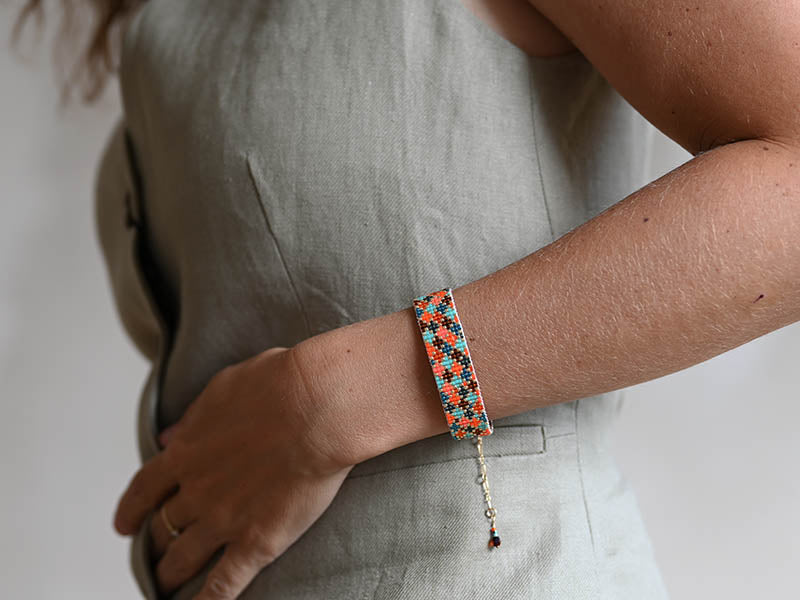 Beautiful patterns of Naronna jewelry are mostly made of japanese glass beads, which are well-known for their great quality and durability. By putting extra care to your jewelry pieces, you can make them last for years in the great condition.